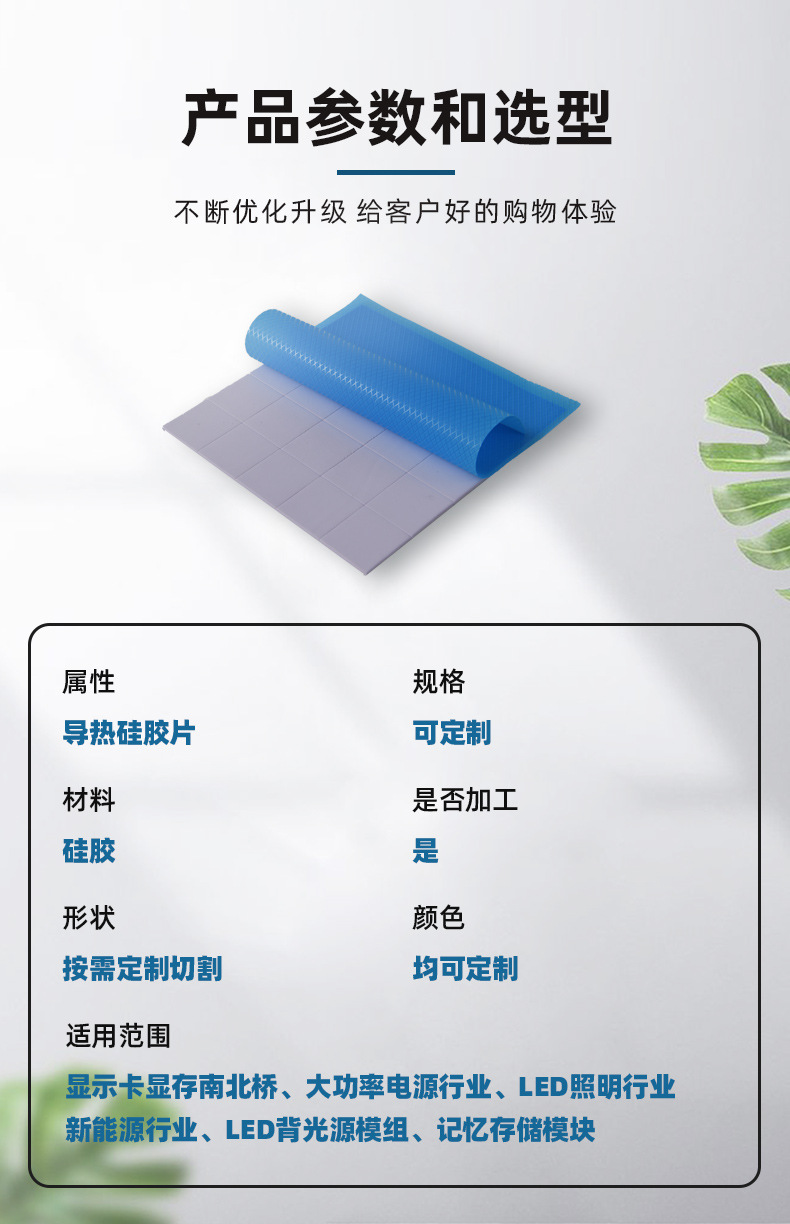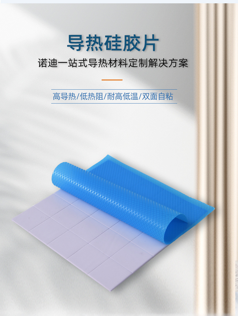 导热矽胶片是一种以硅胶为主要成分,添加高导热填料的复合材料。它具有高导热性、电绝缘性、柔软且富有弹性能填充缝隙、耐温性良好的特点,主要用于电子设备等需要导热的场合。